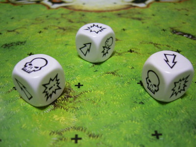 | あとブラッドボウルの醍醐味は、男と男のぶつかりあいだしね! とにかく死人がでるぐらい体をはって相手を倒すでし! わしだってゴブリンでしけど、負けないでしよ! もちろんこっちのほうが数が多かったらの話しでし。 この体当たりの事をブロックって言うでし。で、ブロックの時はブロックダイスっていうちょっと変わったダイスを使うでし。ドクロマークとか矢印マークとか爆発マークとかが描かれてて、ブロックした結果がどうなるかを表しているでし。基本的には、 1/3で相手をぶっ飛ばすでし! で、1/3で相手を後ろに下げるでし。 で、1/6でお互い一緒に倒れちゃうでし。これは不味いでしね。自分も倒れちゃうからターンオーヴァーになるでし。 で、1/6で自分だけ倒れちゃうでし。これは最悪でしね。 こういうと、チキンな奴はビビルかもしれないでしが、大丈夫でし。わしたちゴブリンでも人間を倒せるような秘策があるでしよ。それが支援でしよっ。 ![]() ブロックダイスってのは、ブロックするシトと、されるシトの筋力が同じだと一個っきゃ振れないでし。でも、どっちかの筋力が大きいと振るダイスの数が増えるでし! そして振った結果を筋力の大きいほうが選べるでし! 例えばでしね。普通の時わしが人間をブロックすると、わし達ゴブリンの筋力は2でし。でも人間の筋力は3あるでし。だもんで、わしは2個のブロックダイスを振れるでし!! 、、でも、選ぶのは相手でしね TwT でも、逆にわしのほうが高くなった場合は、わしが自分で決めれるでし。ちなみに、2個振れると、相手をぶっ飛ばせる確立は、33パーシントから、55%まで上がるでし! だからこの筋力が高いほうが凄くゆうりでし! で、話を元に戻すでしね。支援の話でしよ。 支援ってのは、ブロックで押すのを手伝ってくれる人と、押されるのを一緒に守ってくれる人でし。わしと相手しかいなかったら、互いの筋力を比べるだけでし。でも、相手の周りにわしの味方がいれば、わしの筋力が上がるでし。逆にわしのまわりに相手の味方がいれば、相手の筋力が上がっちゃうでし。 今聞いて簡単だなって思ったヤツは早計でしね。この支援ってヤツをするには、他の相手選手の側にいちゃいけないでし。 ややこやしいでしか? そうなんでし! ややこやしいんでし! こういう事を考えながら選手を動かさなければならないから、頭も使うんでしね。バカにはできないんでしっ!! (細かい説明はべつのところで教えてやるでしよ) とは言え、うちのオーナーも遊べてるって事から慣れちゃえば簡単みたいでしね。 で、さっきは言わなかったでしが、ターンオーヴァーになるのに、重要なのがも一個あるでし。それは4分でし! 自分の順番は4分しかないでし! だから、ブロックするのにじっくり考えているとすぐに4分なんてたっちゃうでし。この4分がきちゃったら、移動中の選手だろうとすぐに順番はおしまいでし。 これによって、スペーデイで、フリリングなゲームが行なえるでしよ。 |