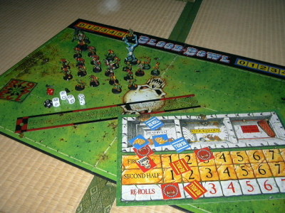 | 色んなルールでハラハラドキドキするでしっ よくある二人で順番っこに遊ぶゲームでは、たいてい決まった行動がとれるでしね。 例えば、将棋なら一つのコマを動かせるでし。シミレーションゲームとかでも、全部のキャラを動かせるでし。マゲナイトとかいうゲームでは、決まった数のコマを動かせるでし。 みんな、動かす前からどのぐらいのコマを動かせるか知ってるでしよ。でも、ブラッドボウルは違うでしっ ボールを拾い損ねたり、体当たりしたのに逆に倒されたり、ムリして走って転んじゃったりしたら、そこで自分の番は終了でしっ!! それこそ相手選手が怒涛のようにこっちのフィールドに雪崩れ込んできて、やっと自分の番になったのに、焦ってボールを落としちゃったら、すぐにまた相手の番になっちゃうでしっ!! おまけに、コーチ(つまりアンタでし)が間抜けだと、コマを動かす前にやらなくちゃならないことを忘れちまって、コマを一つも動かしてねぇのに番が終わっちまう事だってあるでしよ。 ここのホームページの持ち主はよくやるでし。、、今はあんまりやらないでしか? でも、二回も連続でやる奴は少ないでしよ。 で、いっつも行動の失敗が順番の終了(そりをターンオーヴァーって言うでし)となるでしから、一個一個の判定もドキドキするでしよ。 |